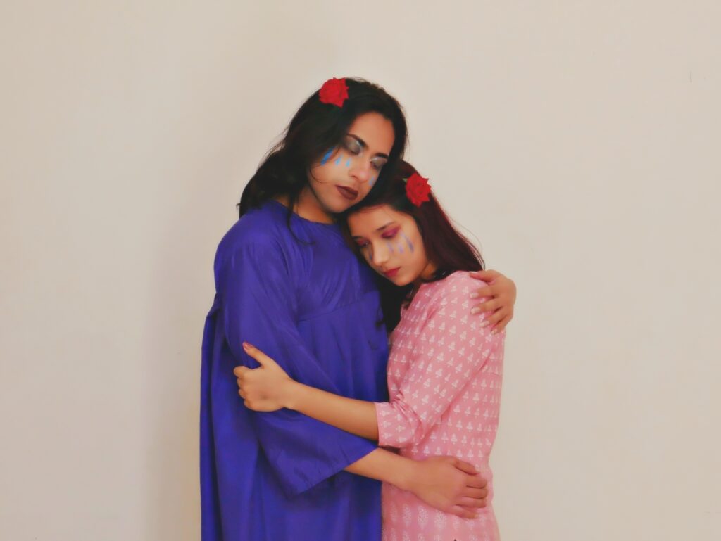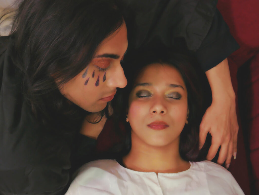 “Collectibles of grief” is imagined as a visual extension of my creative non-fiction piece titled “A fever, a djinn, and the collectibles of grief”, published as part of the anthology ‘On the Brink of Belief’. The photo essay uses creative reimagination depicting the coexistence of djinns and humans, and dispels the more commonly believed ideas about djinns in public cognizance— which is a demonisation of the entity, and therefore by extension in my belief, a demonisation of queerness.